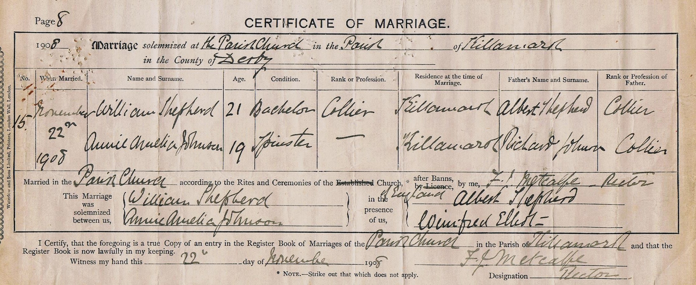 William and Amelia’s Marriage Certificate. Published February 5, 2013 at 2265 × 928 in Killamarsh People William and Amelia’s Marriage Certificate.