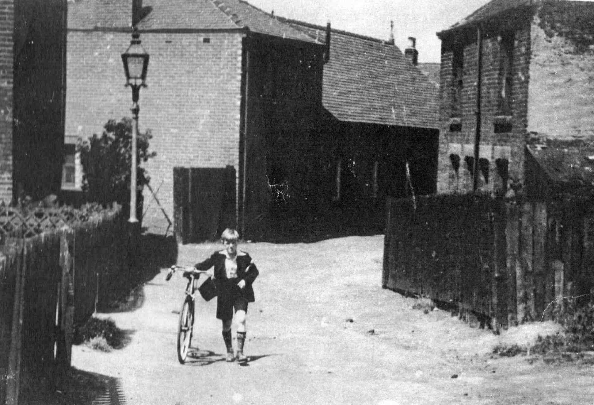 Chapel Street. Mr Bailey the Blacksmith’s house on left. Primitive Methodist Church built in 1876 in centre. Jimmy Hoskins with his bicycle. Photo courtesy of Mary