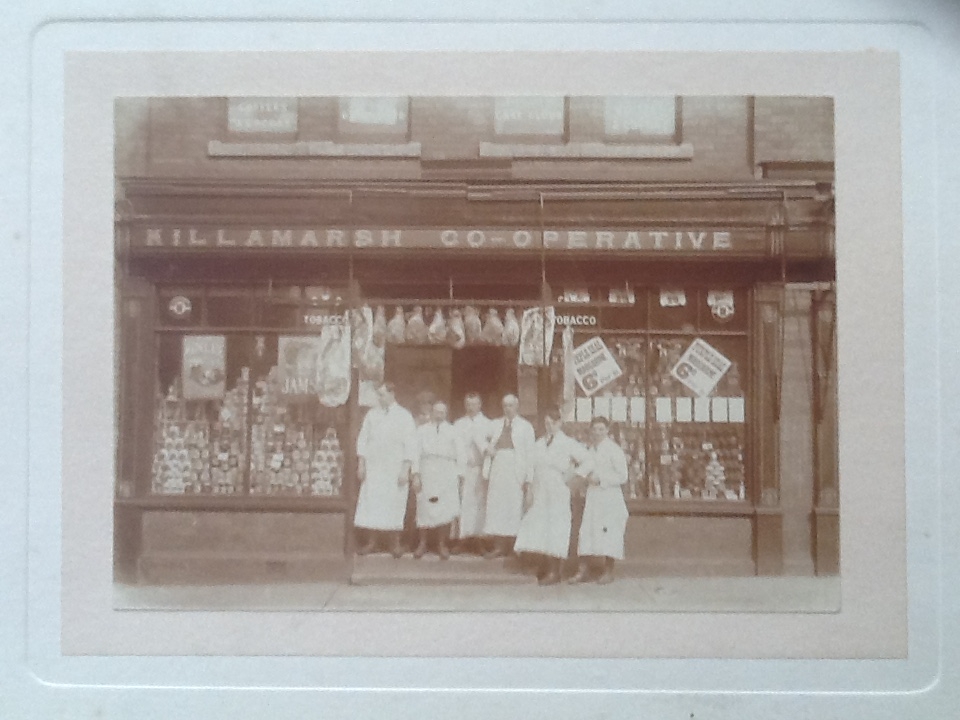 Killamarh Co-op in the 1930s. L-r Sam Hardy,Wallace Walker, Mr Jones, Mr Martin, Sept Batty, John Severn, Herbert Taylor. Photo courtesy of Muriel Bolsover (nee Severn) Published February 7, 2015 at 960 × 720 in Photo Gallery 2