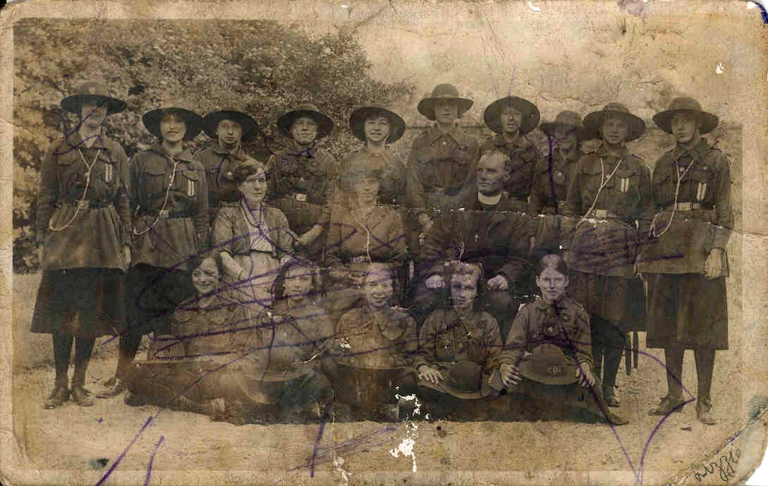 One thought on “Killamarsh Girl Guides with Rector Powell. Photo of Mrs D. Bower.