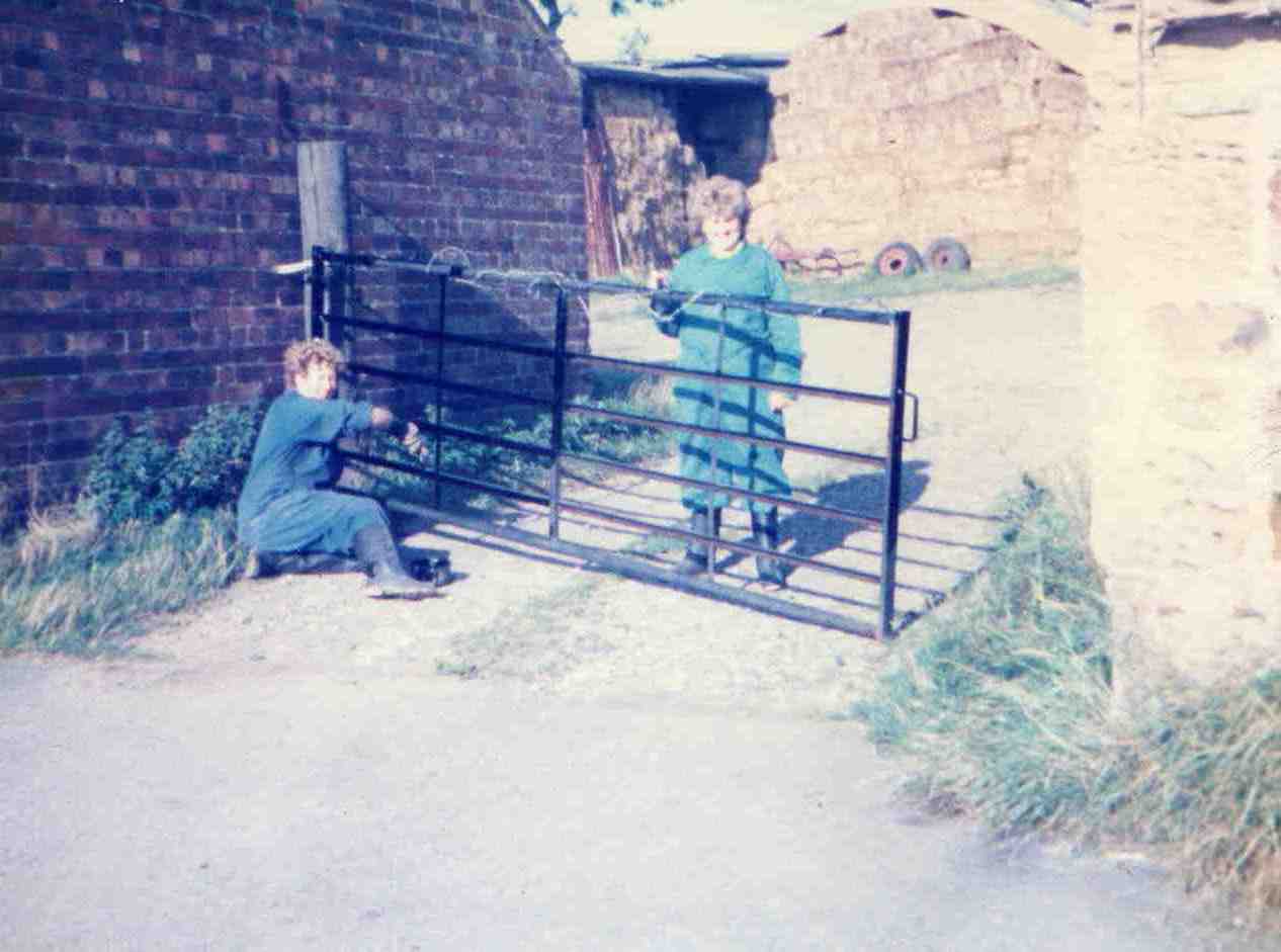 Zoe Emson and Amanda Habberjam (c Summer 1986) helping farmer George to make the gate look good at Manor Farm, Killamarsh. Published March 26, 2015 at 1266 × 941 in Photo Gallery 2
